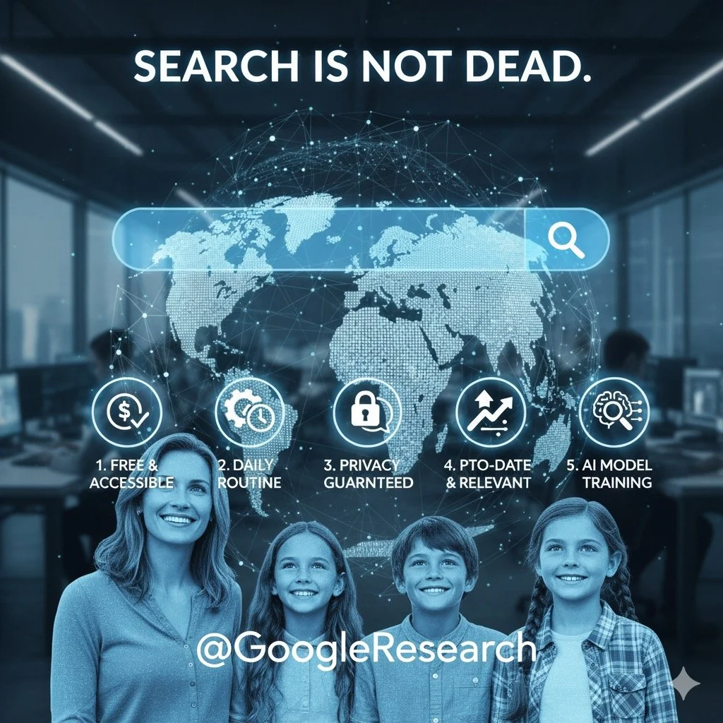 Search is not dead; in fact, it remains an essential tool for information discovery. 1. It is free to use, making it accessible to everyone. 2. It continues to be a fundamental part of our daily working routines. 3. Unlike some other tools, it does not record or store your private discussions. 4. It efficiently finds the most up-to-date and relevant entries available online. 5. Additionally, it serves as valuable material for training advanced language models.